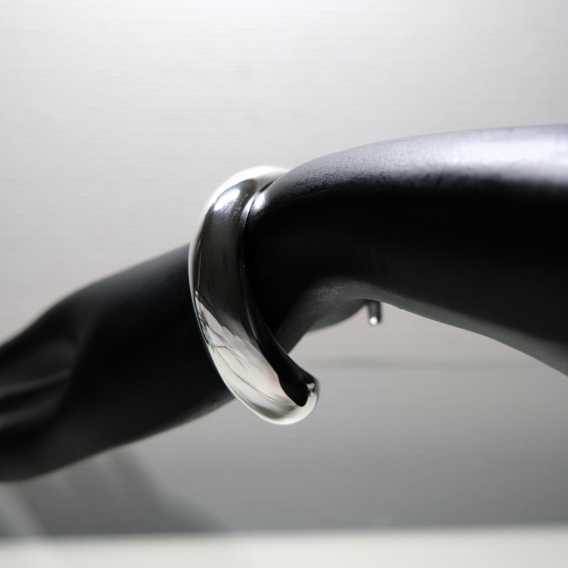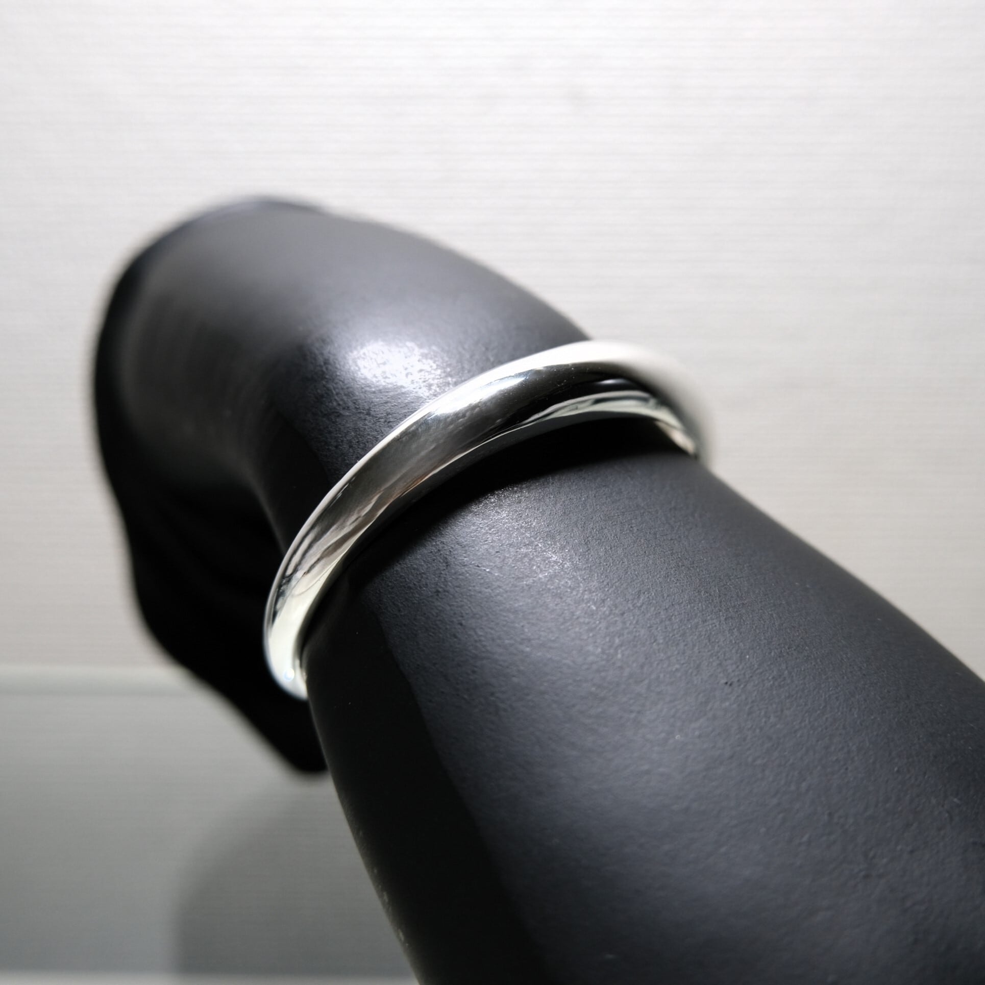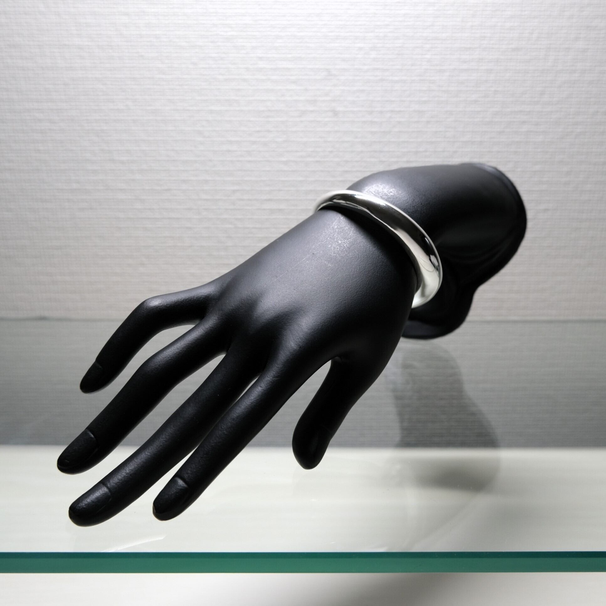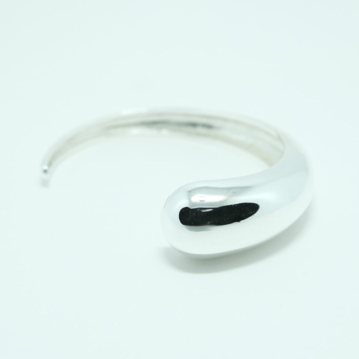 斜めにカットされた滴型のデザインが特徴のバングル。