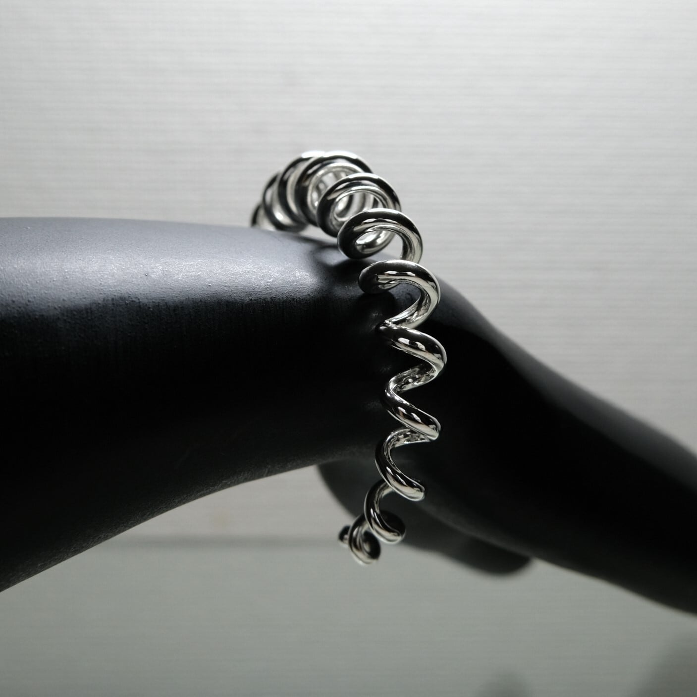 ぐるぐる巻きつくようなフォルムが手元を美しく引き立て、どんなスタイルにも自然に溶け込みます。軽やかな着け心地で、長時間の使用にも最適です。