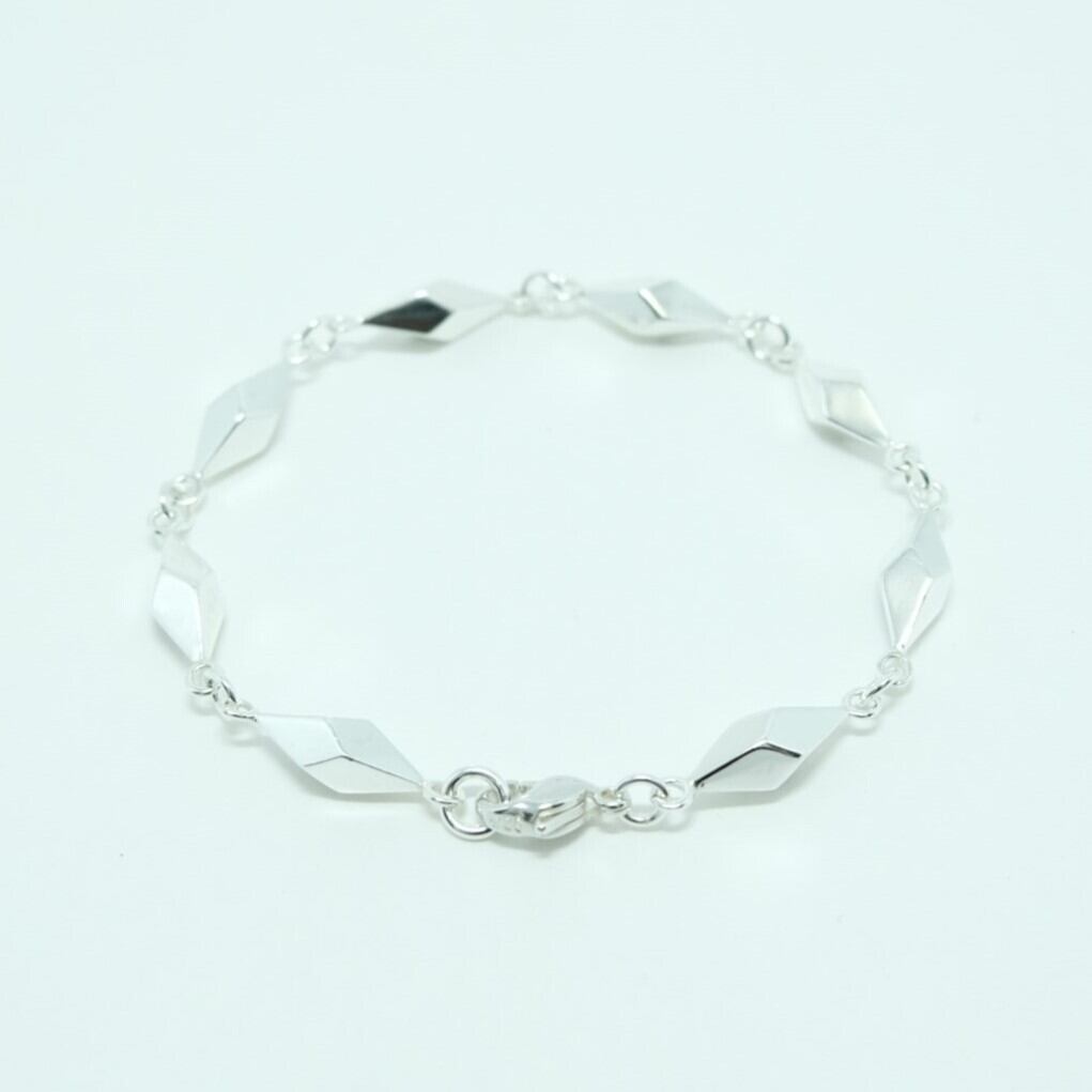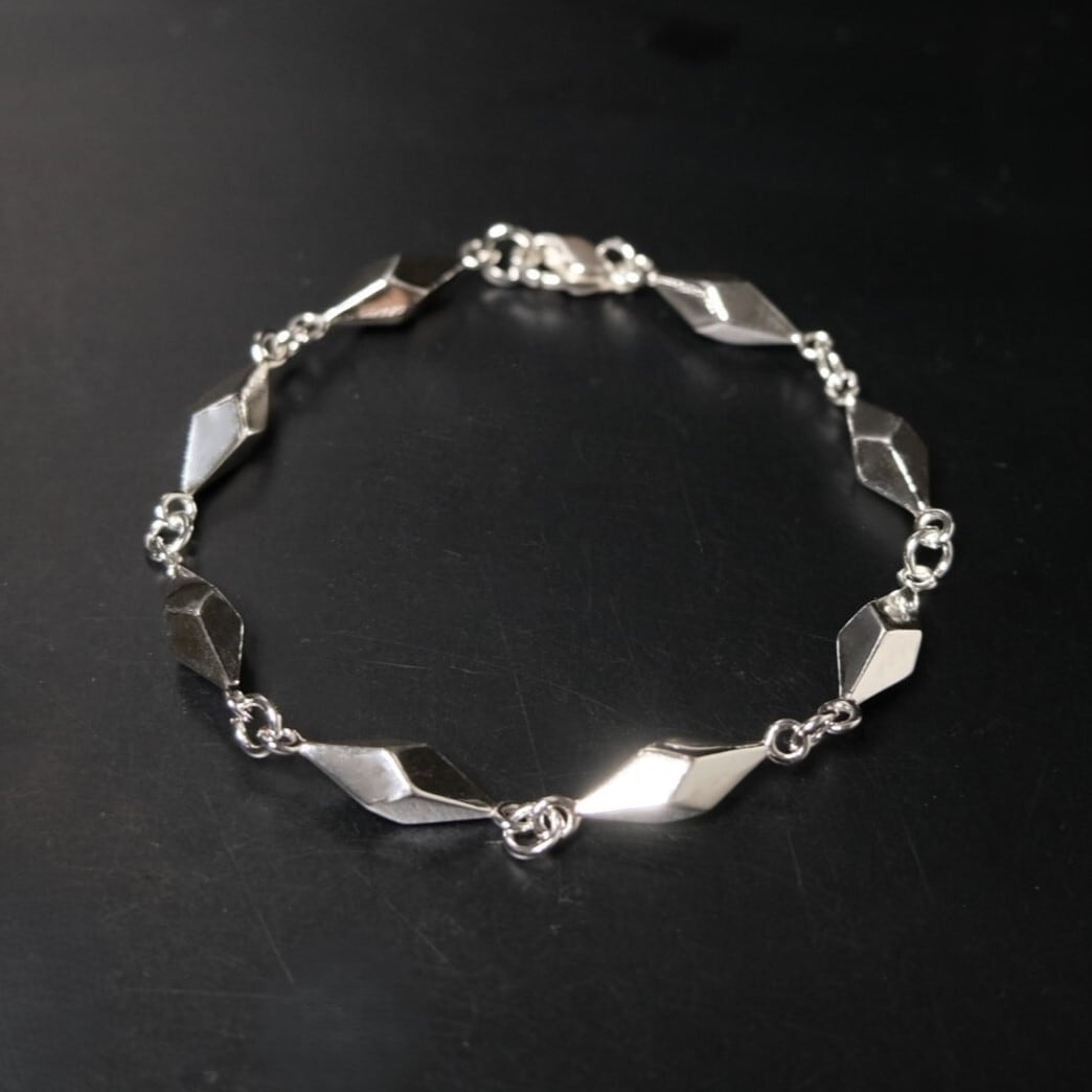 シャープな稜線が交差する、モダン・オブジェのような構築的シルエットのブレスレット。
