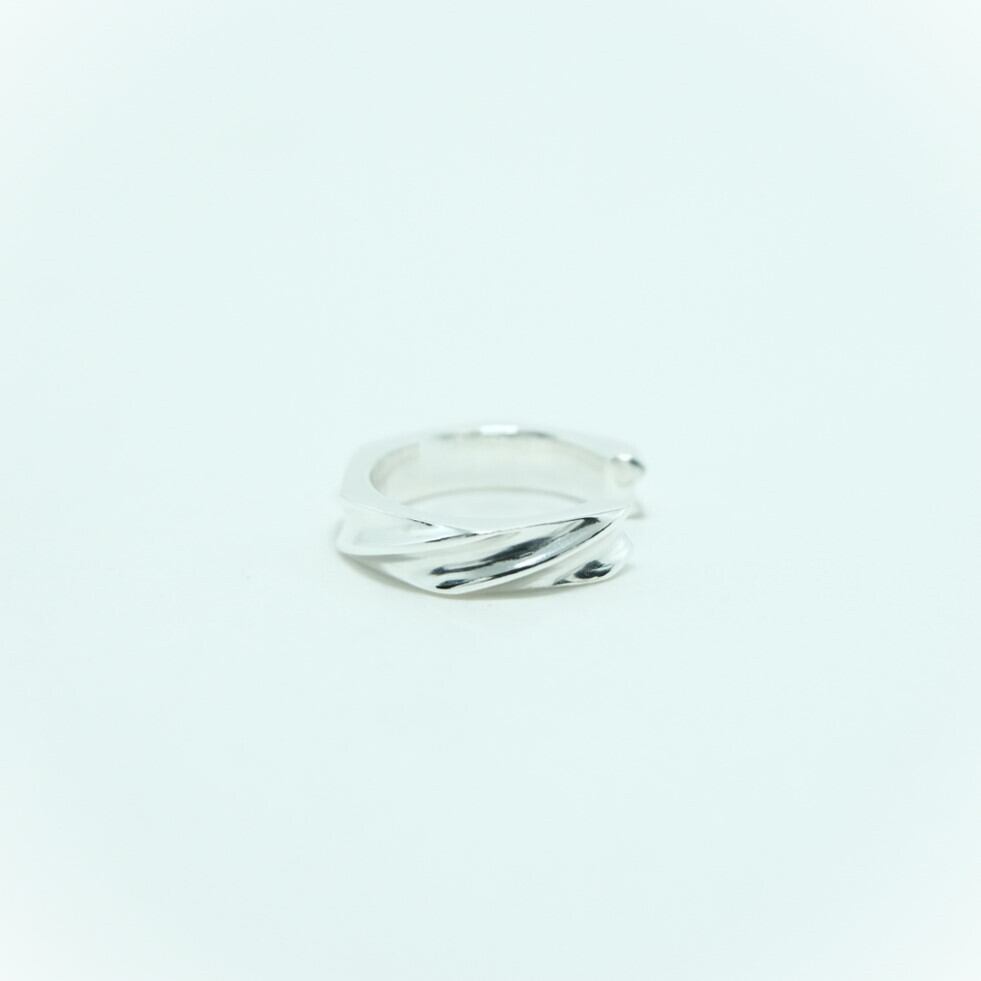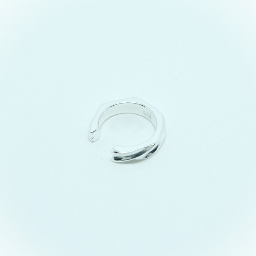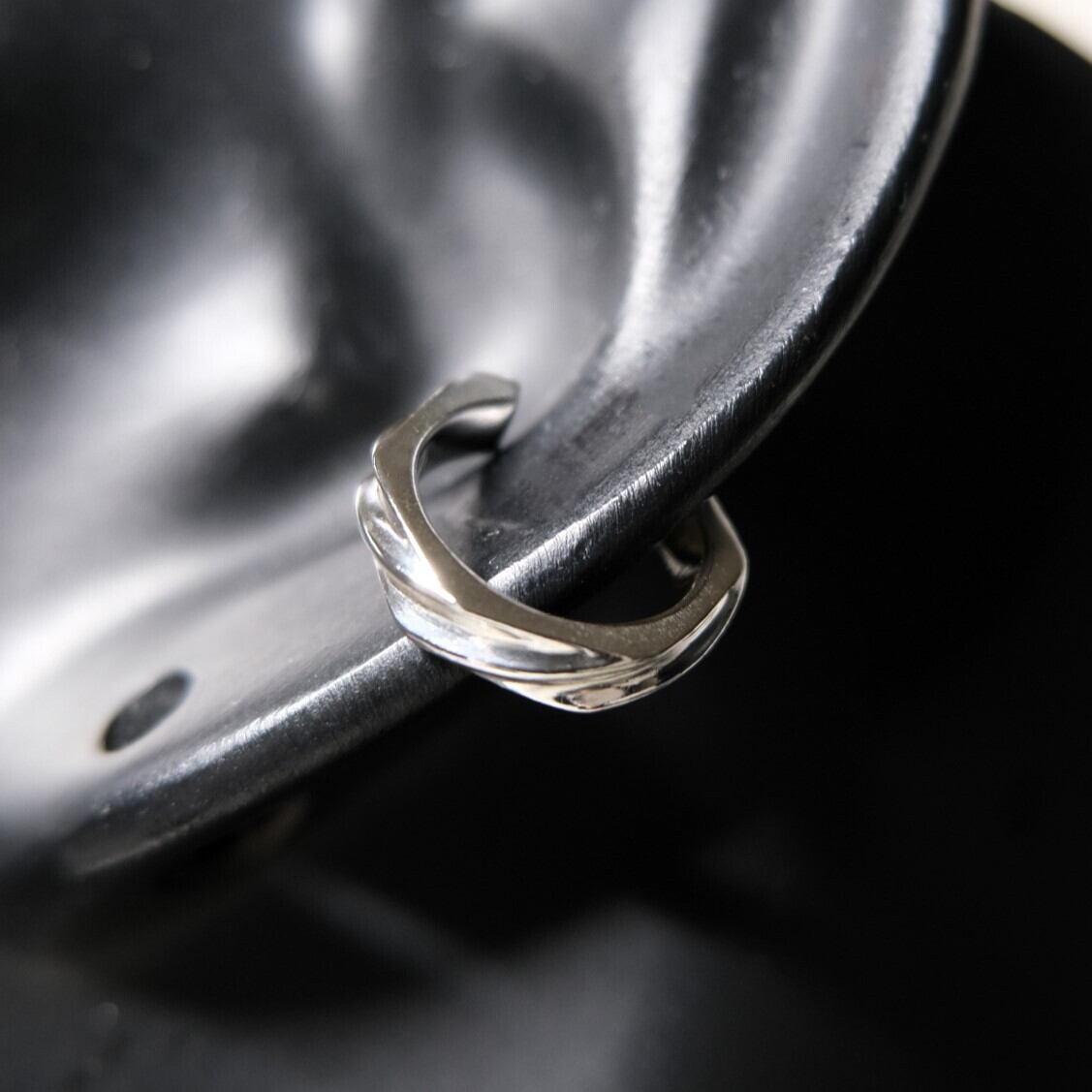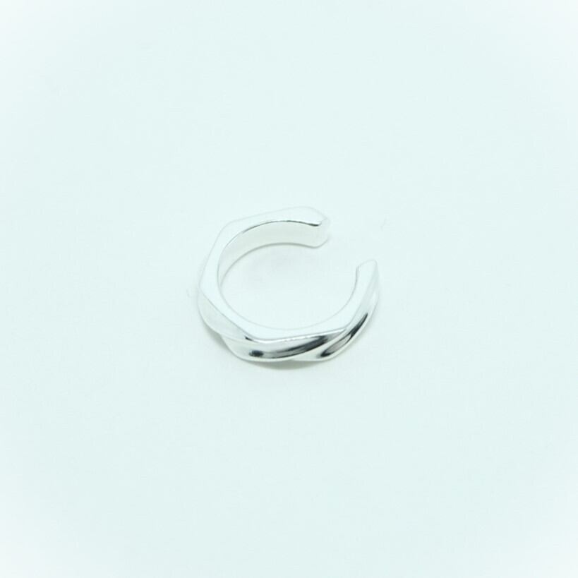 表と裏の六角形がねじれたがデザインが特徴のイヤーカフ。