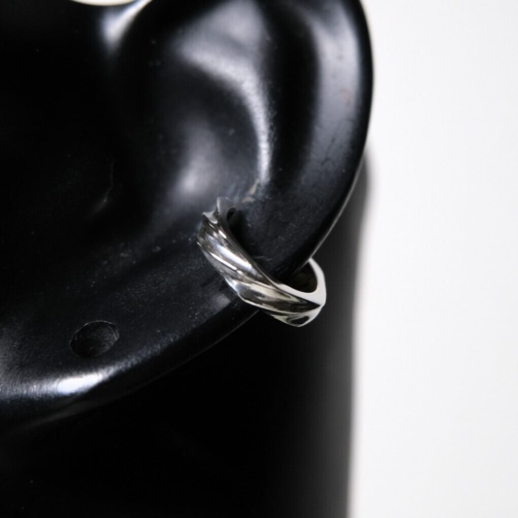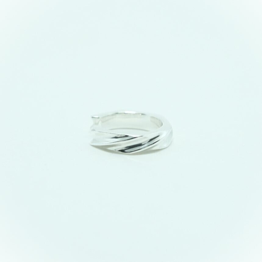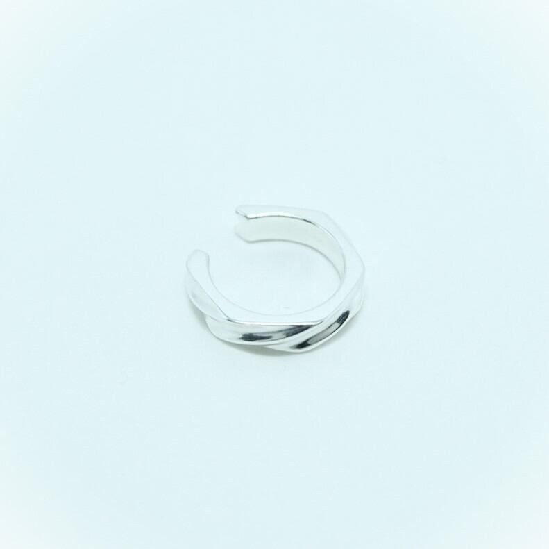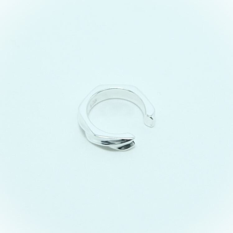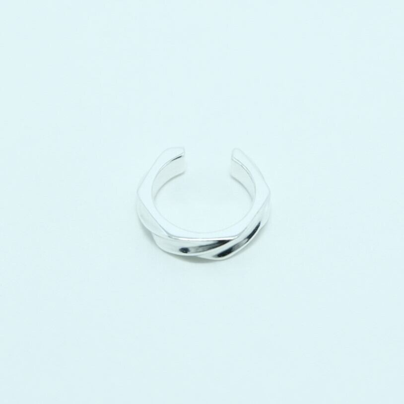 表と裏の六角形がねじれたがデザインが特徴のイヤーカフ。