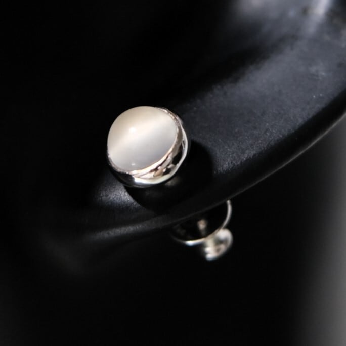 ムーンストーンは乳白色の石の曲面にシラー効果と呼ばれる青白い光の反射が見られます。