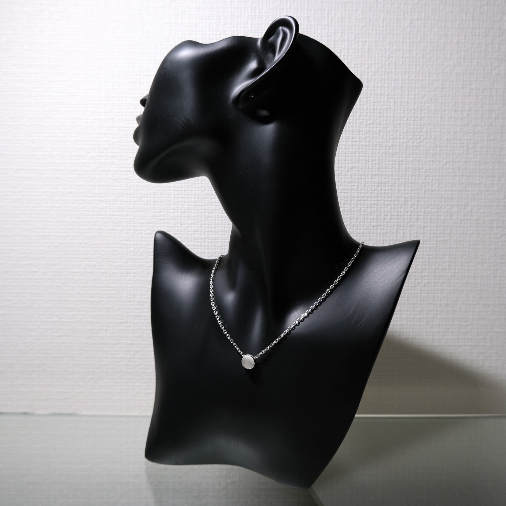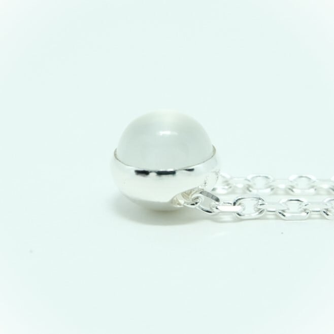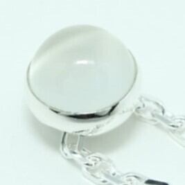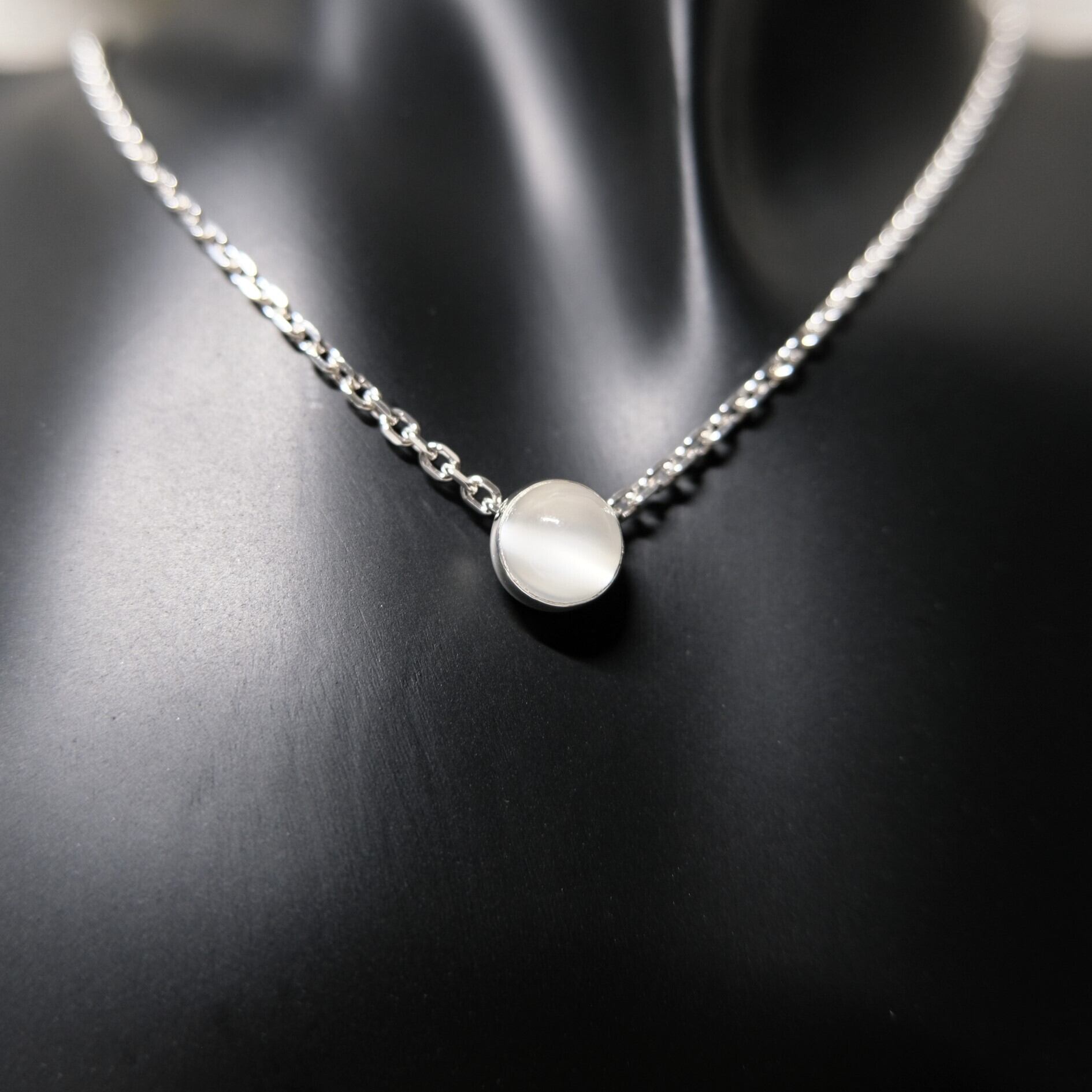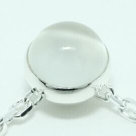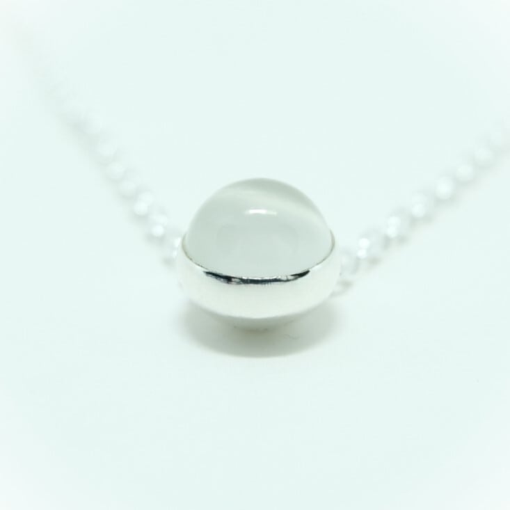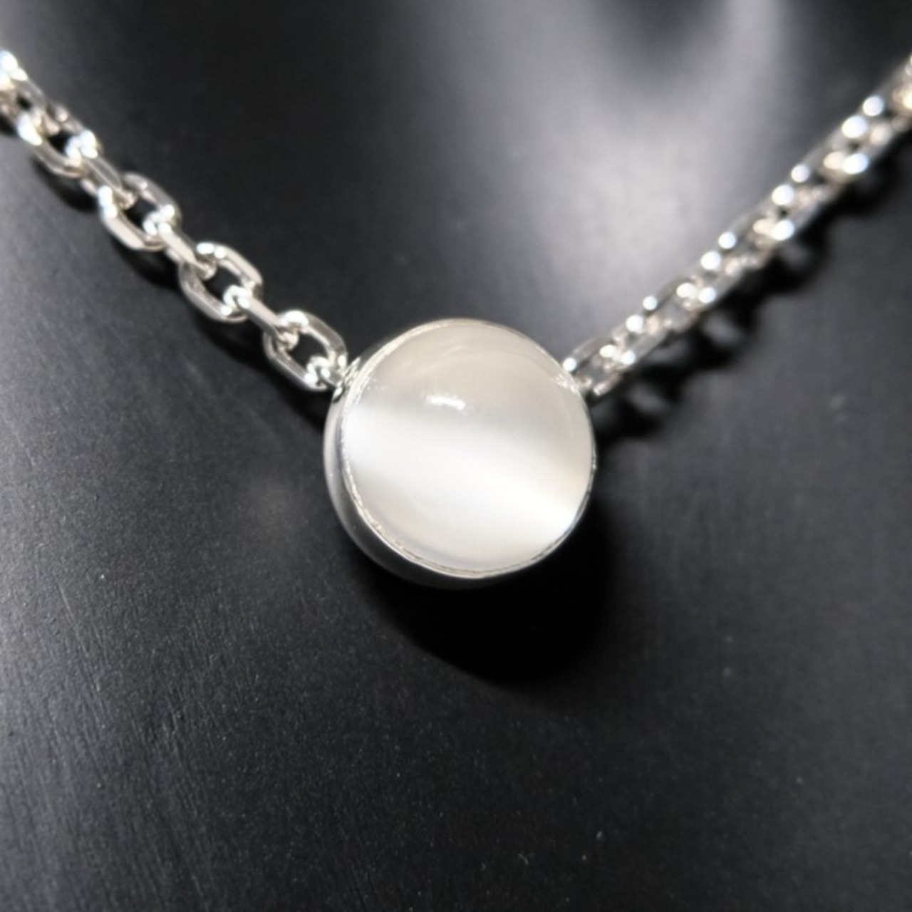 ムーンストーンは乳白色の石の曲面にシラー効果と呼ばれる青白い光の反射が見られます。