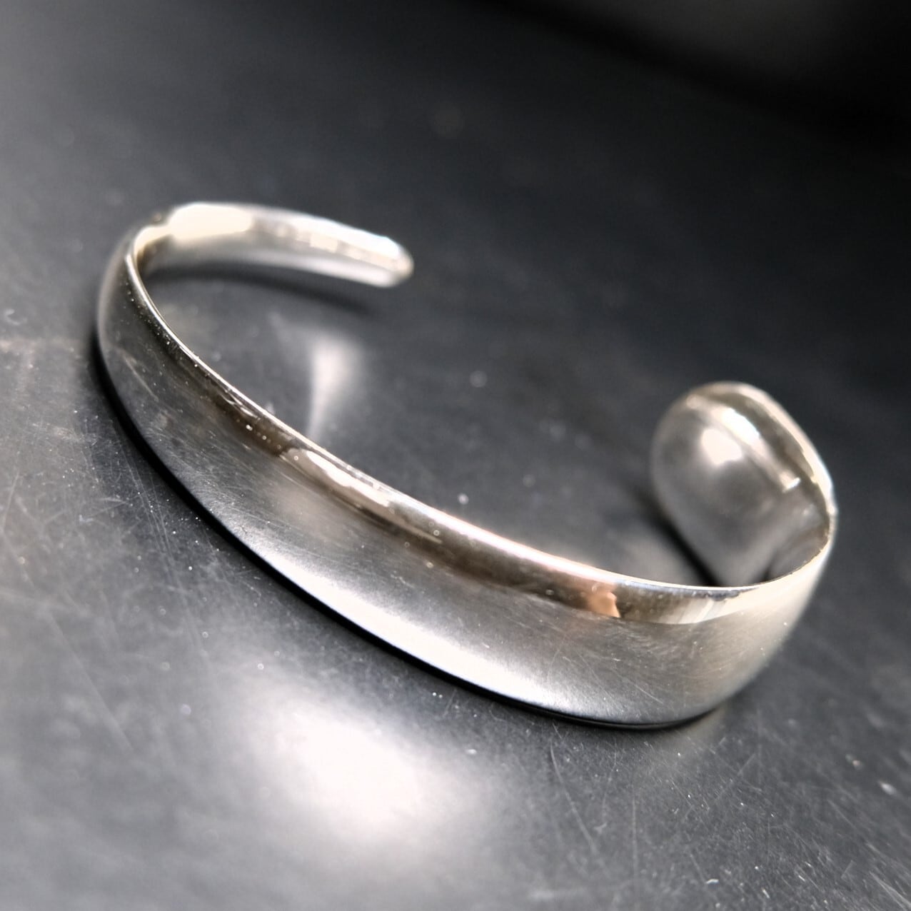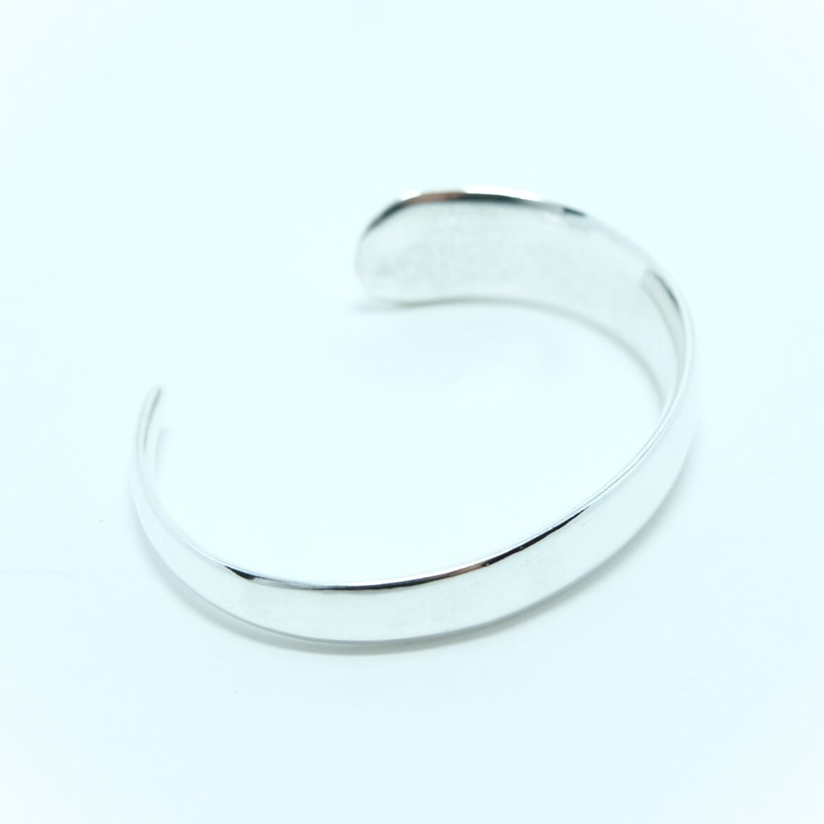徐々に薄く細く斜めにカットされた滴型のデザインが特徴のバングル。
