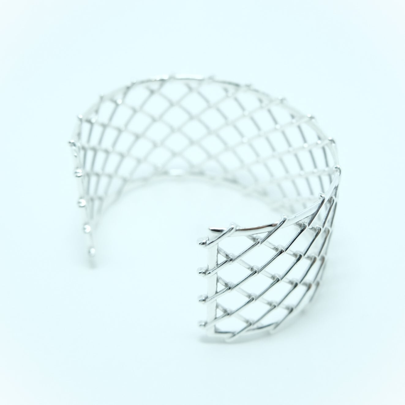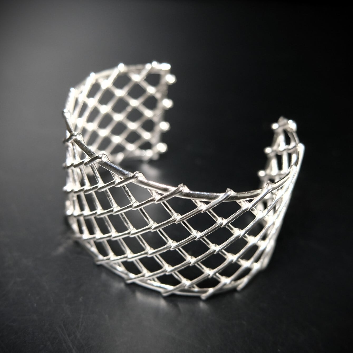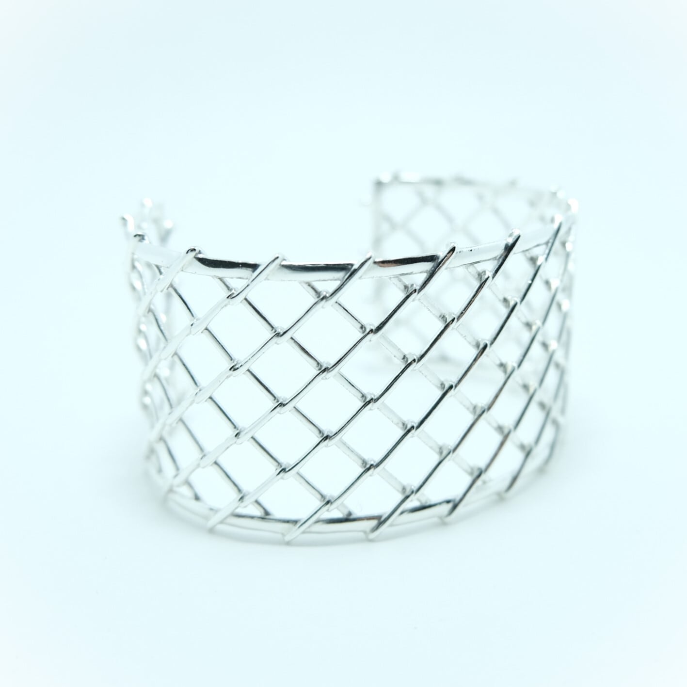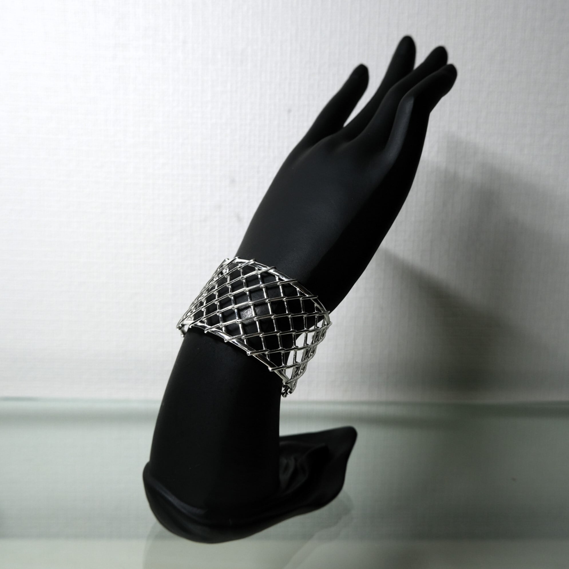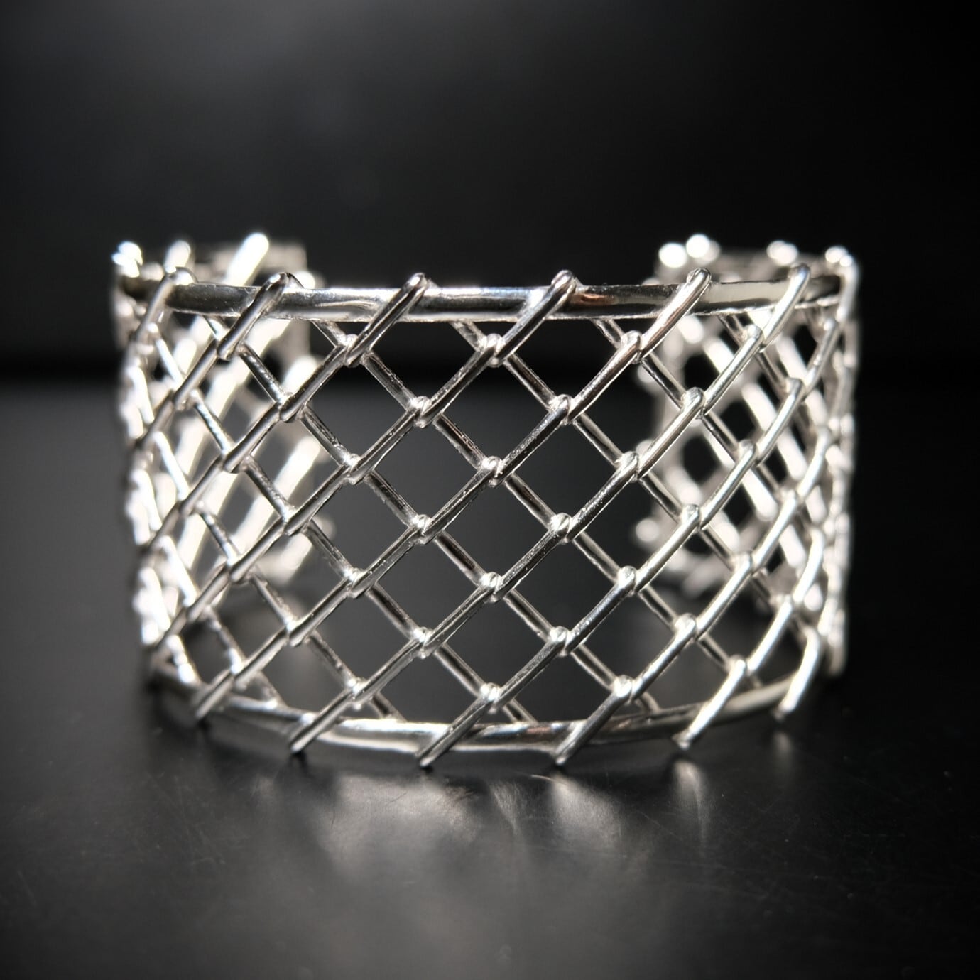 フェンスの様な金網のデザインがユニークなカフバングル。
