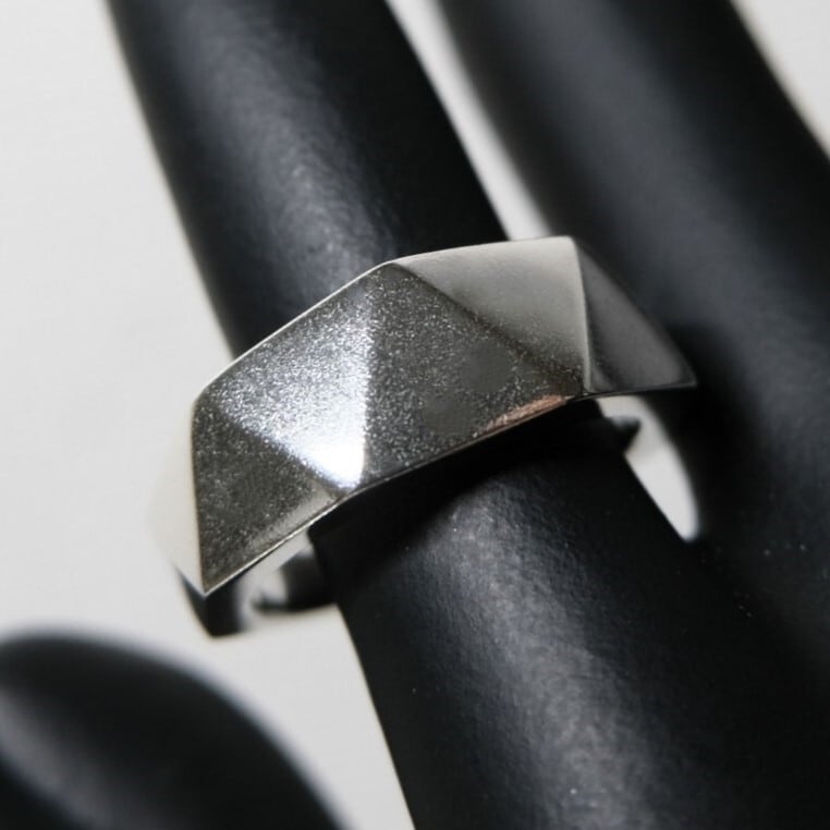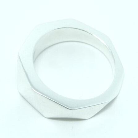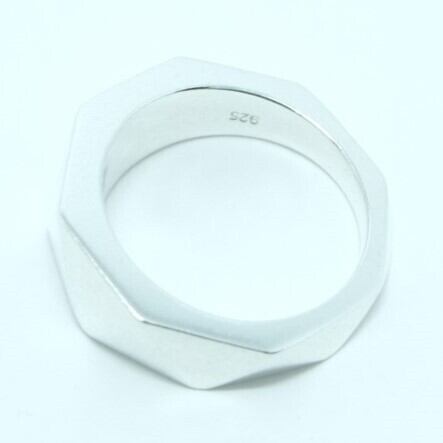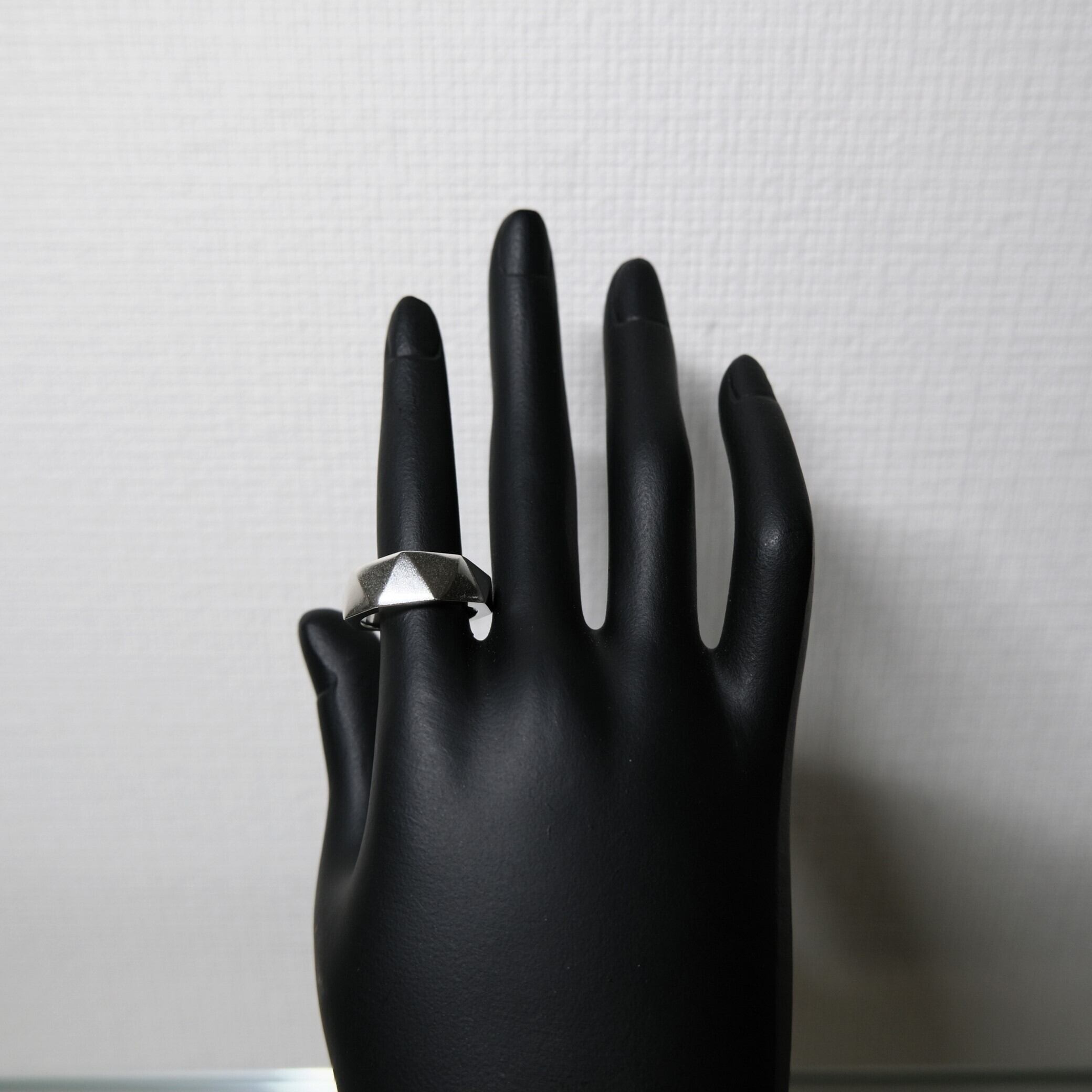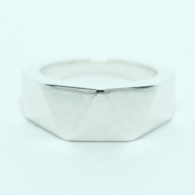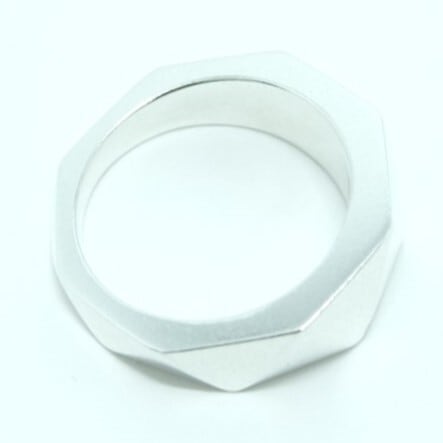 表裏で少しずらした八角形の面と面の間で多面カットされた三角形が特徴的なデザインで、男女問わずお使いいただけます。