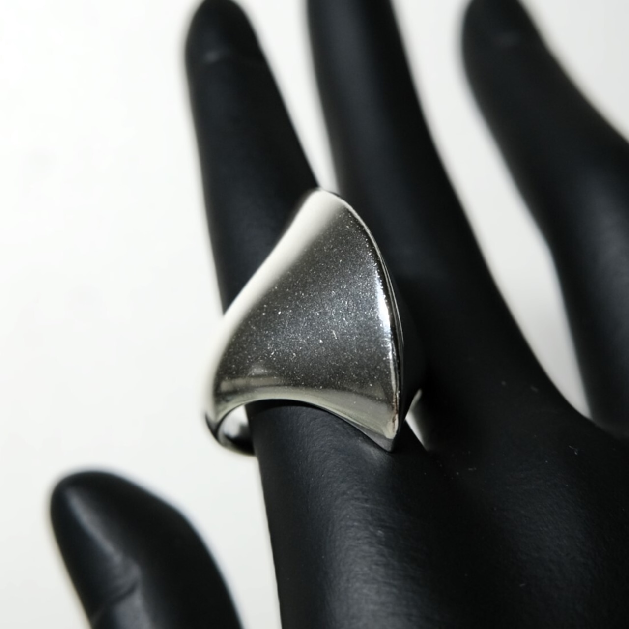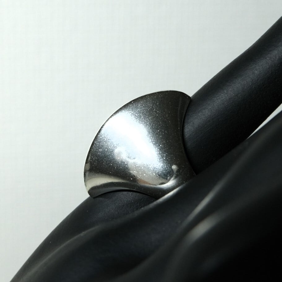 斧の様なエッジの効いたデザインが魅力のリング。