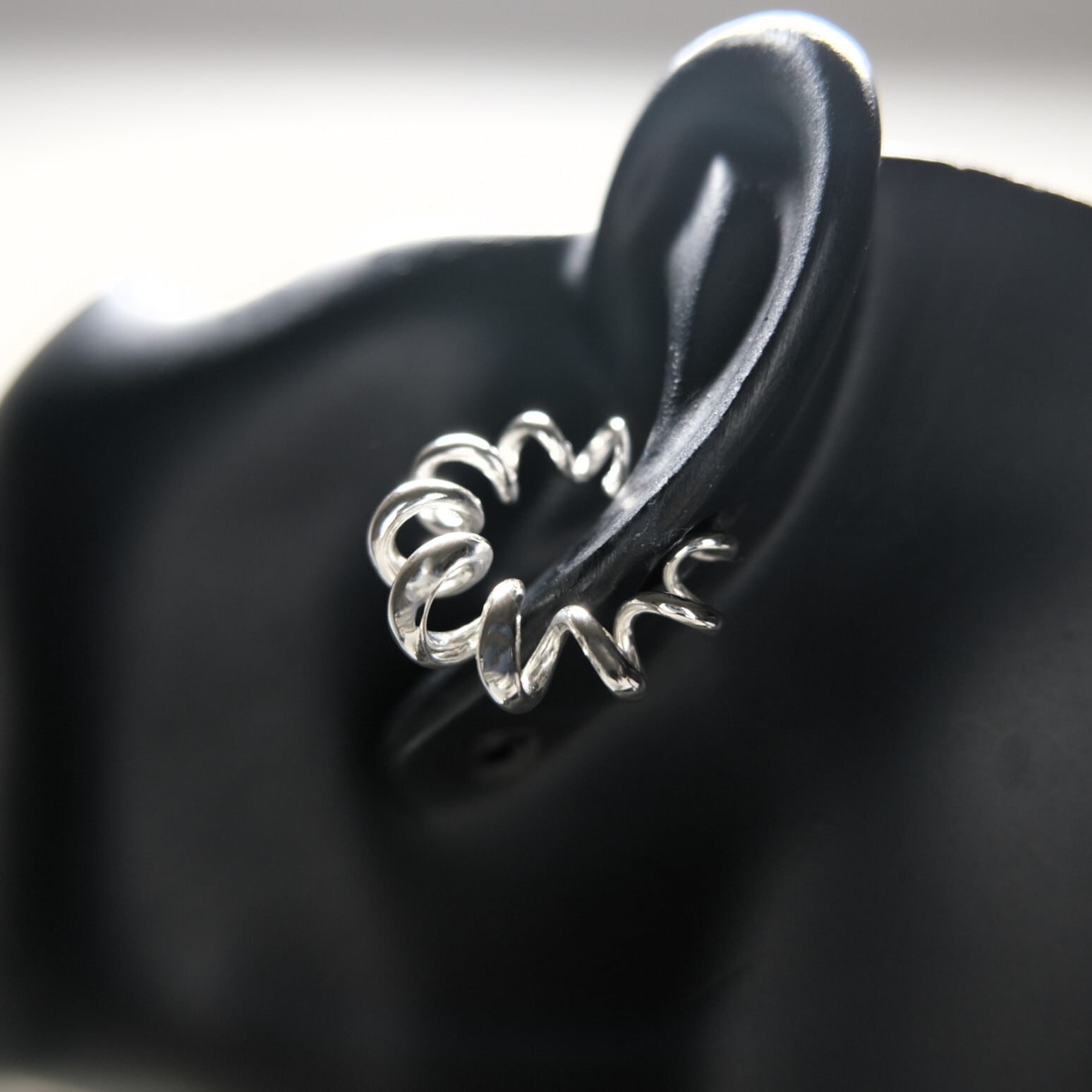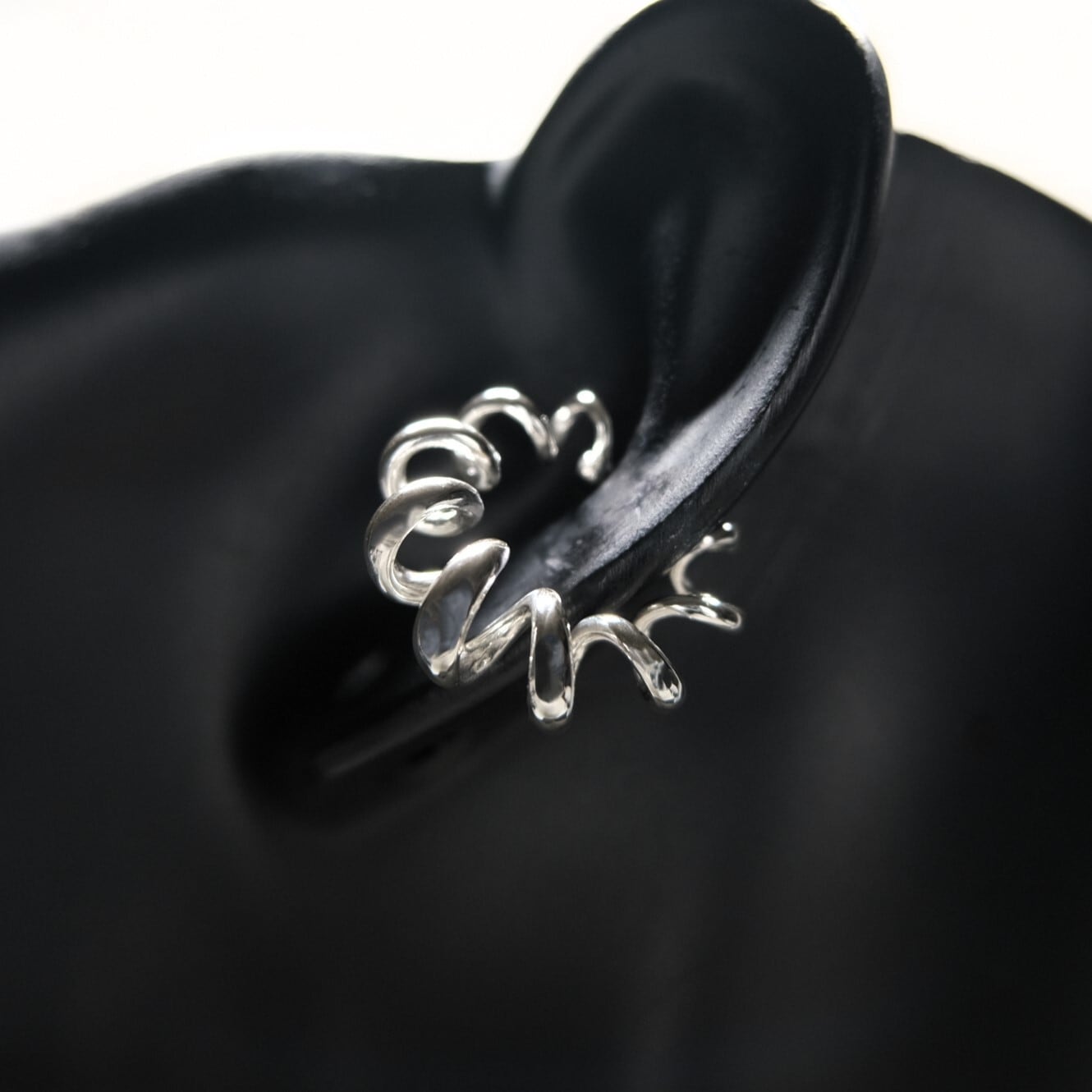 ぐるぐる巻きつくようなフォルムが耳元を美しく引き立て、どんなスタイルにも自然に溶け込みます。