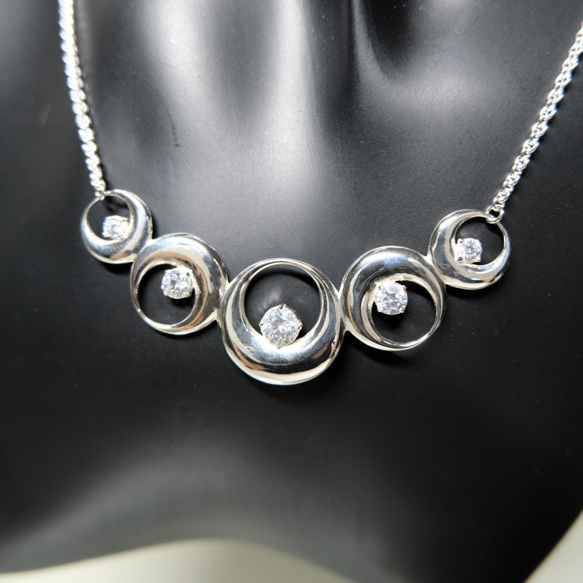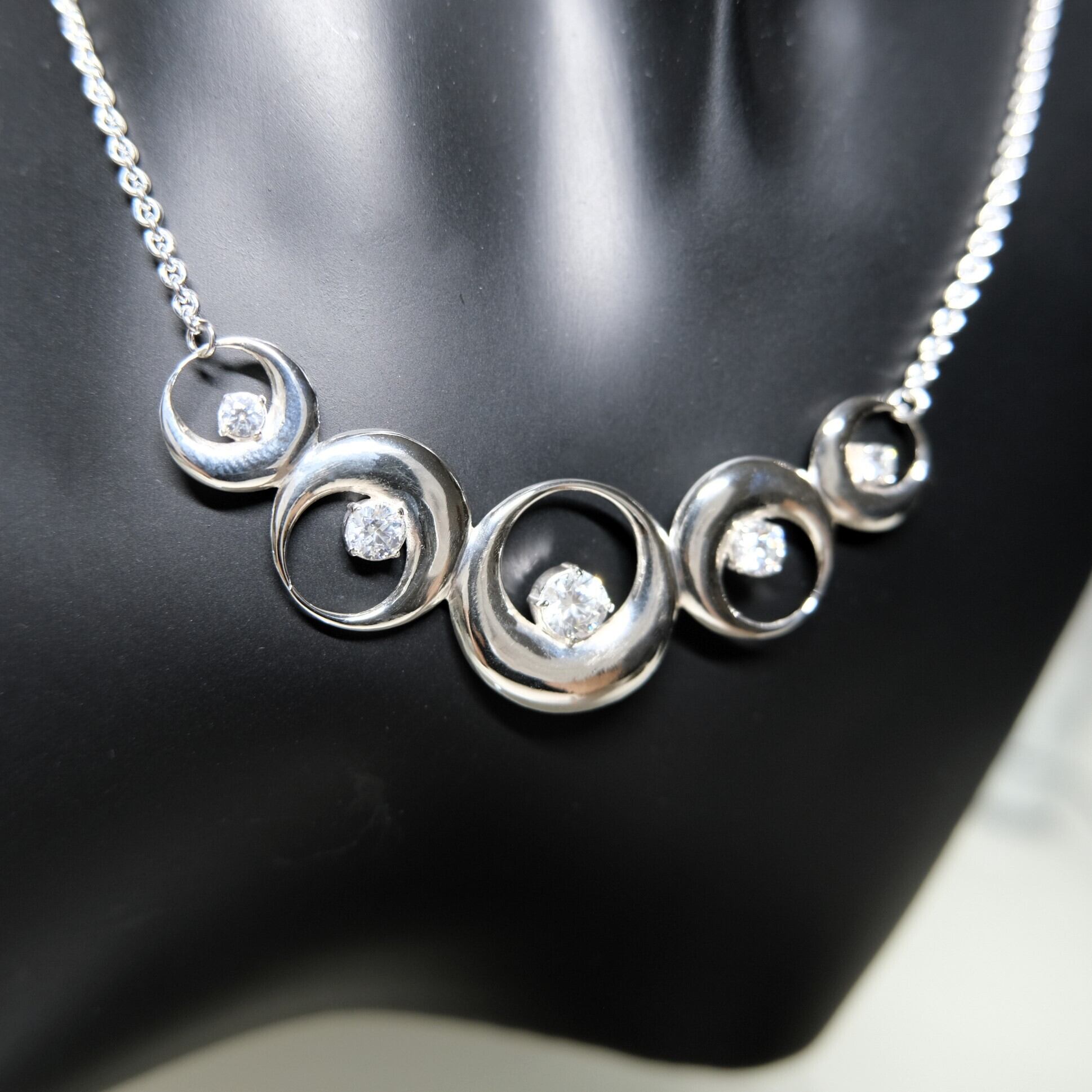 繊細な三日月のモチーフが印象的なビブネックレス。