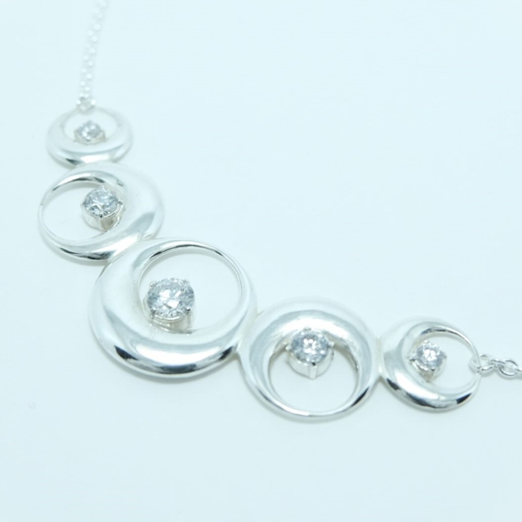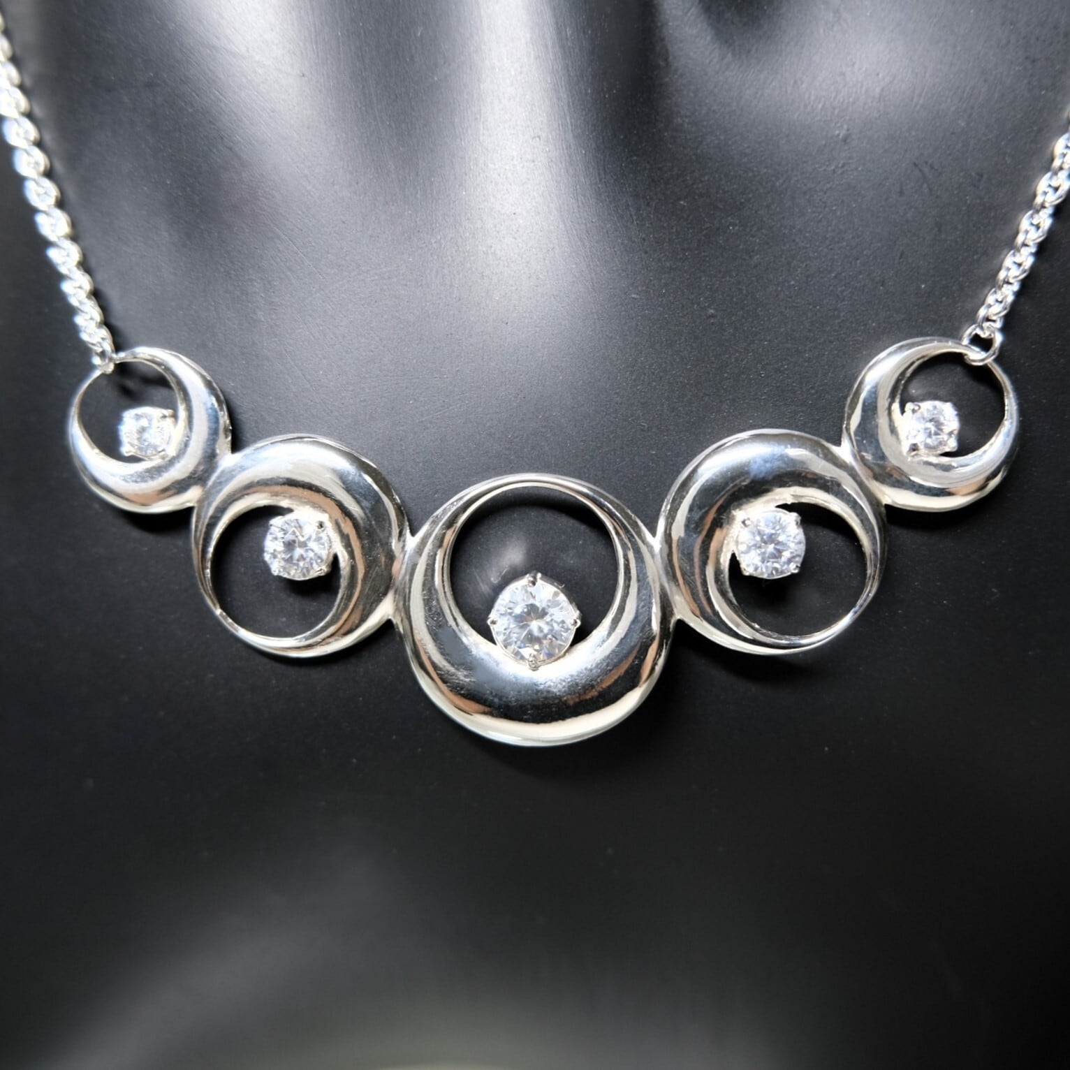 大小異なる下弦上弦の五つの三日月が首元を光輝かせます。