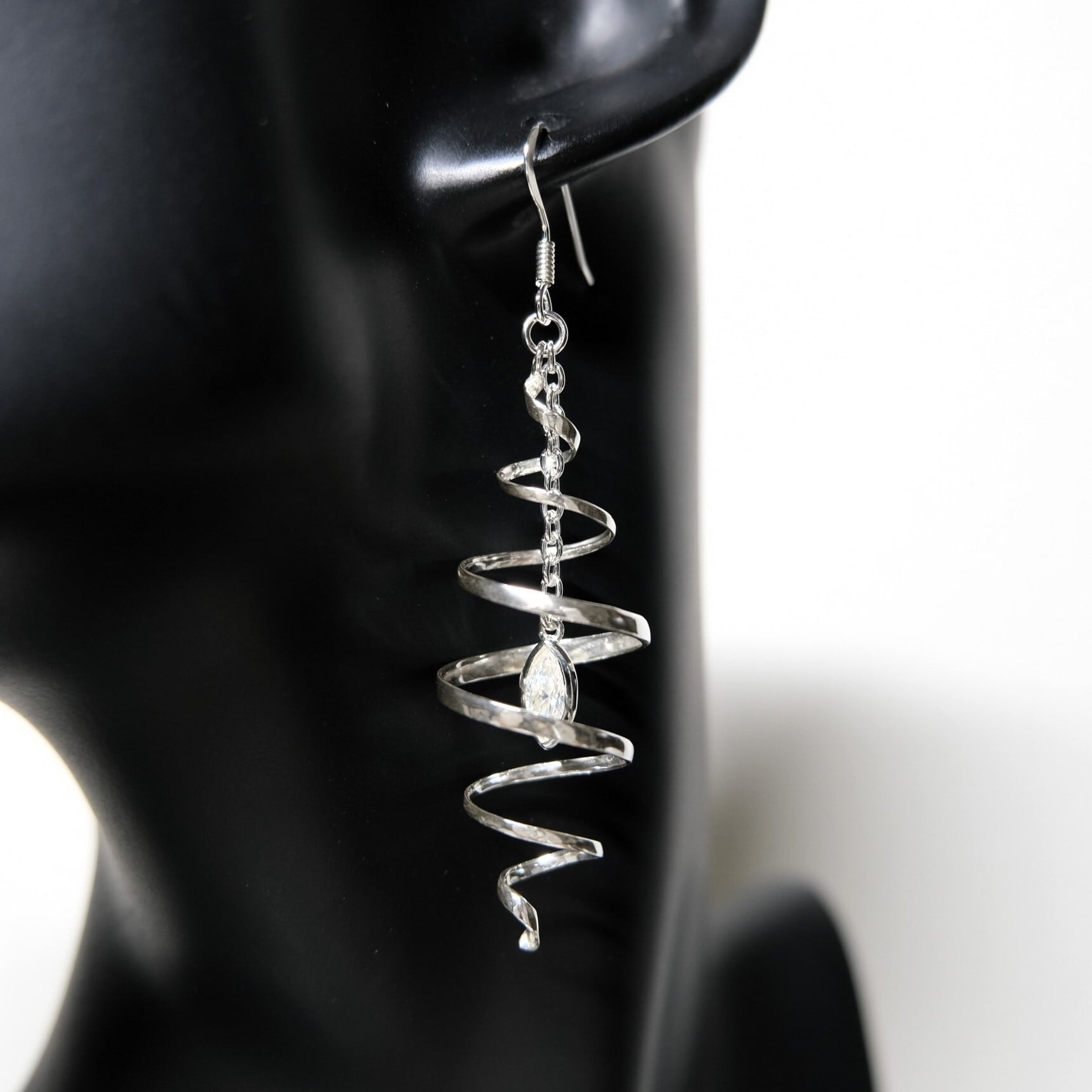 中央にある美しいマーキーズカットの石が動きに合わせて光を纏い、耳元を華やかに演出します。