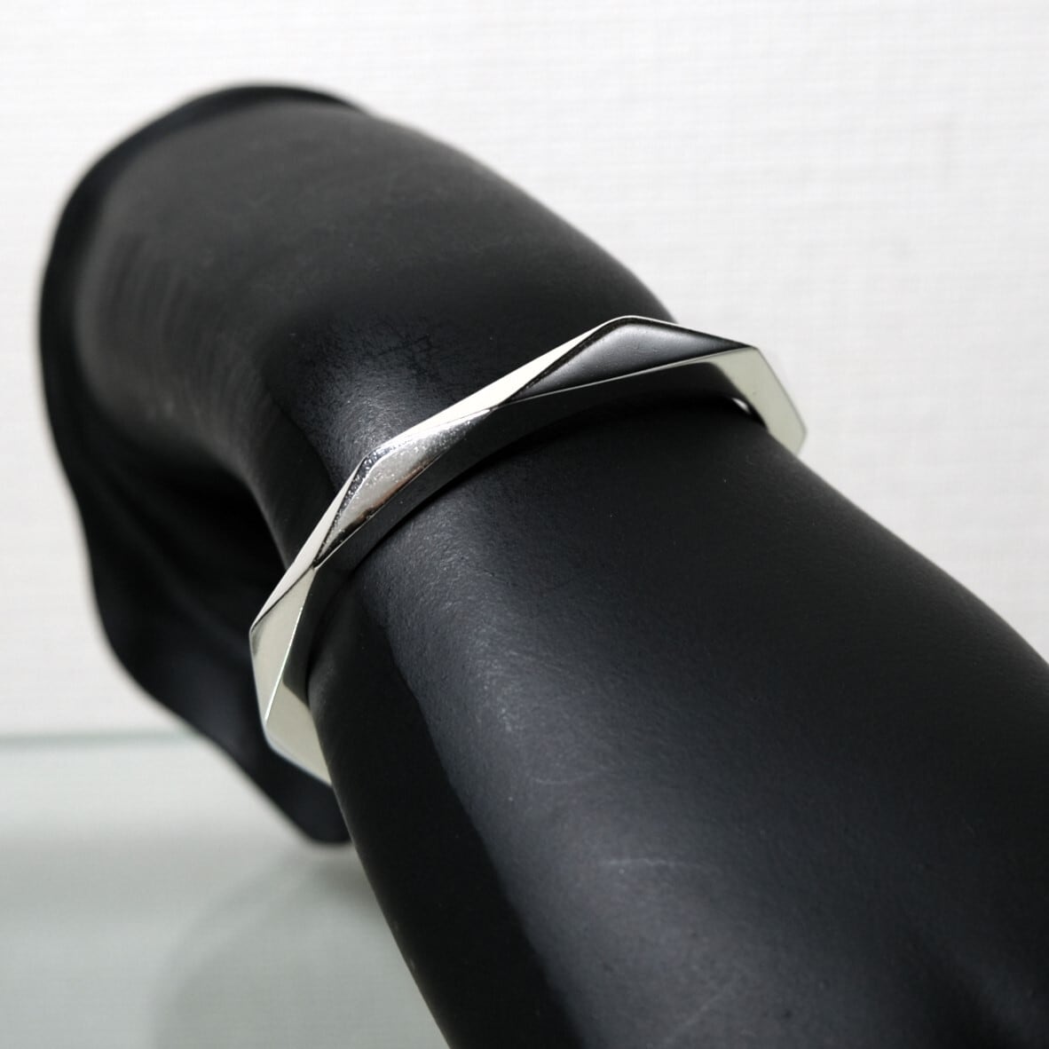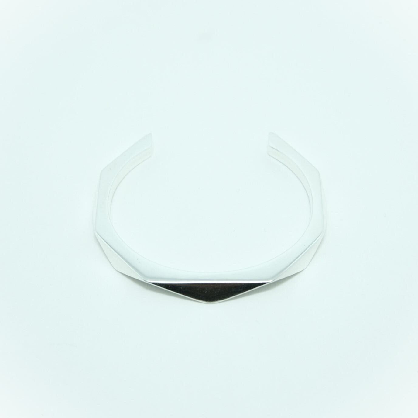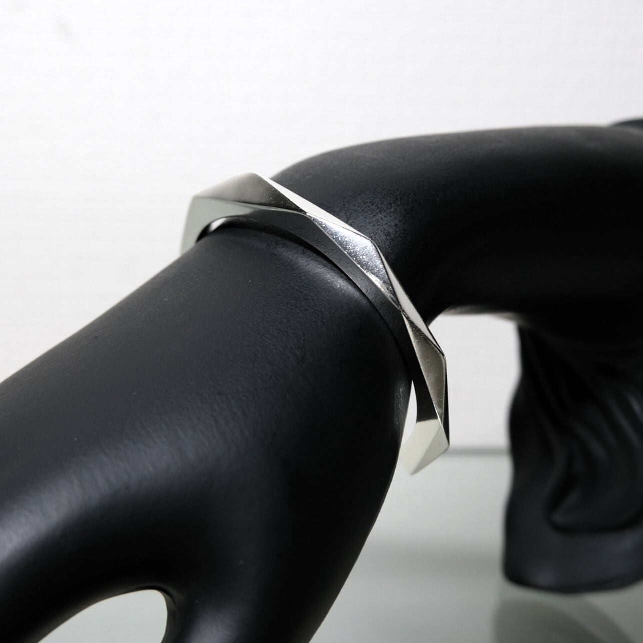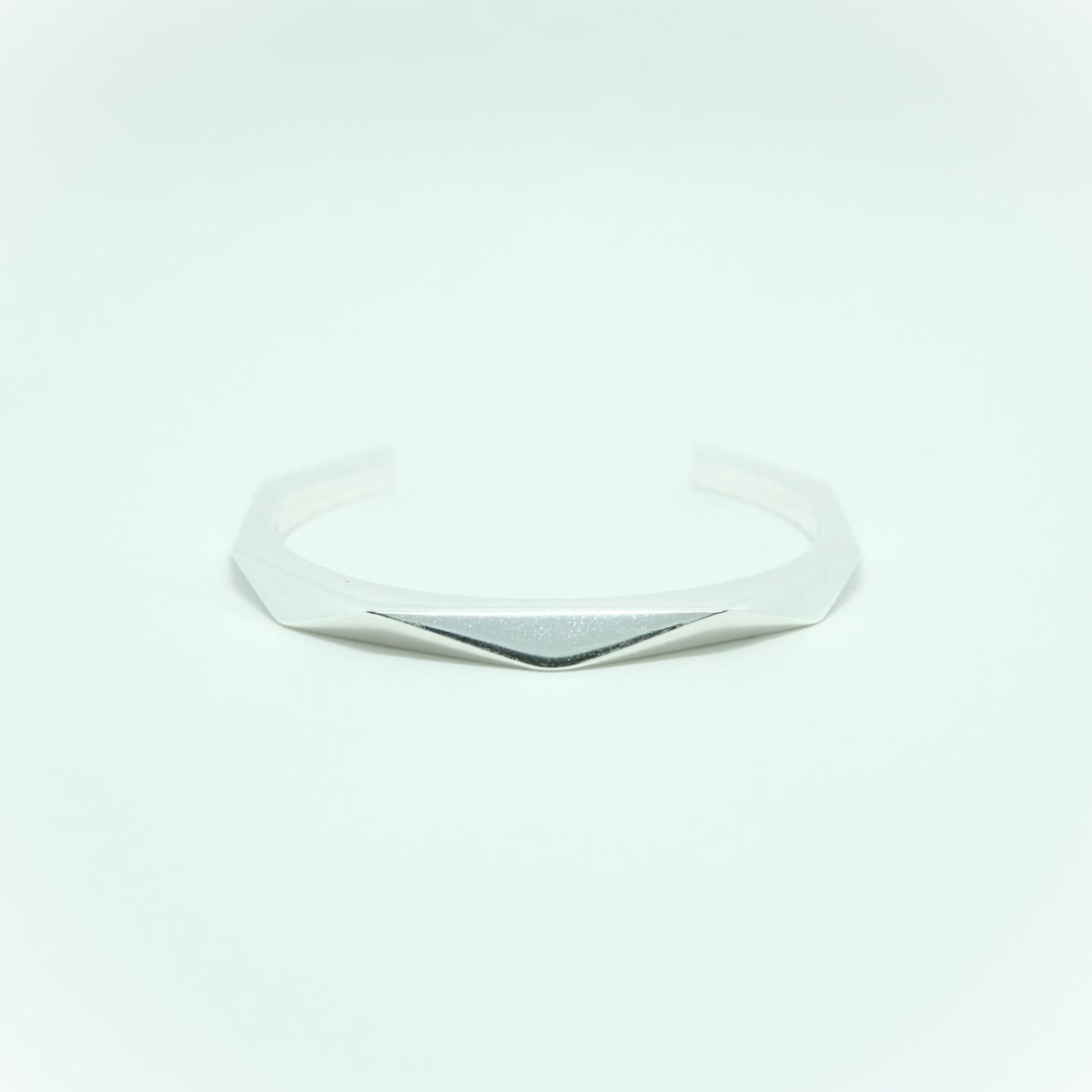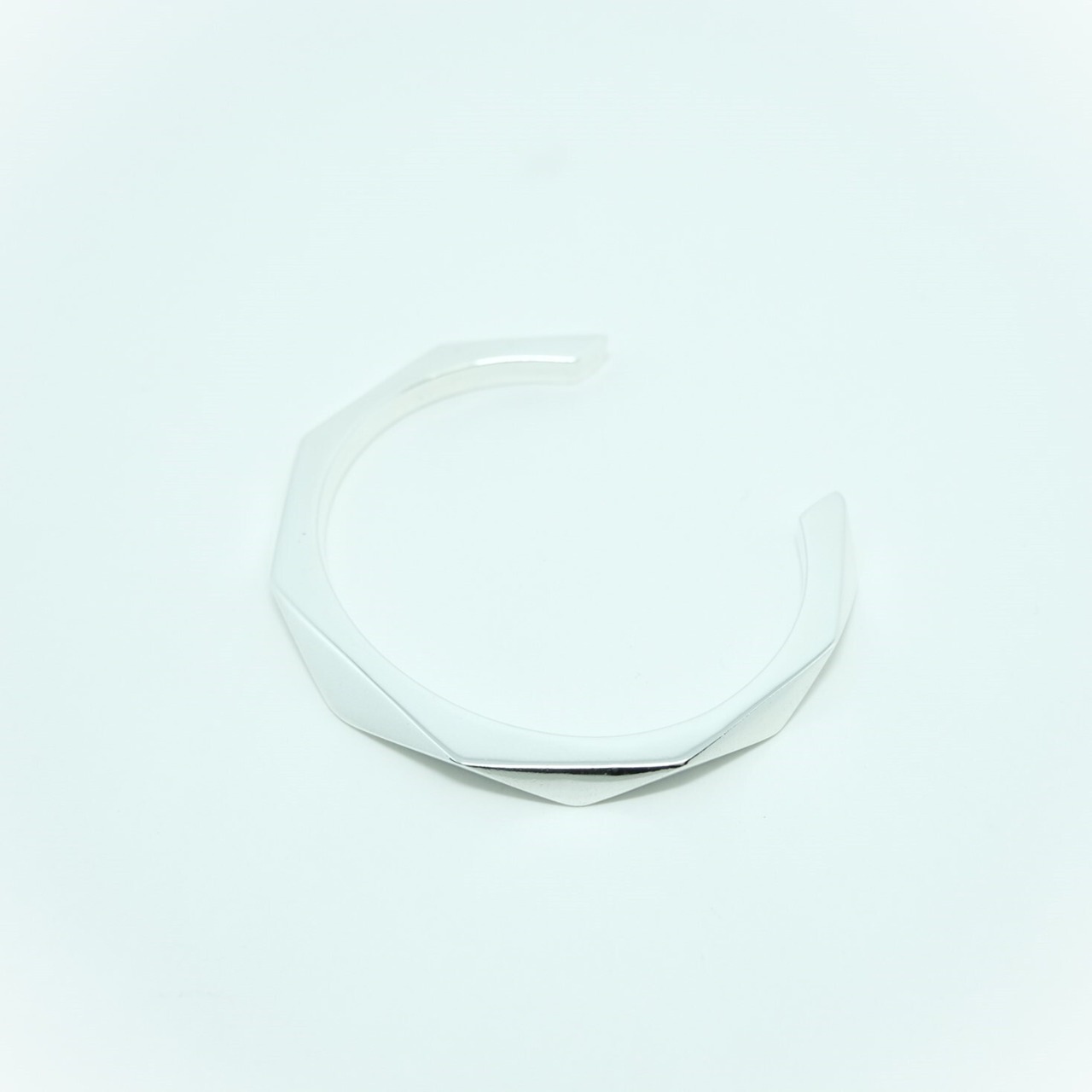表裏で少しずらした八角形の面と面の間で多面カットされた三角形が特徴的なデザインで、男女問わずお使いいただけます。